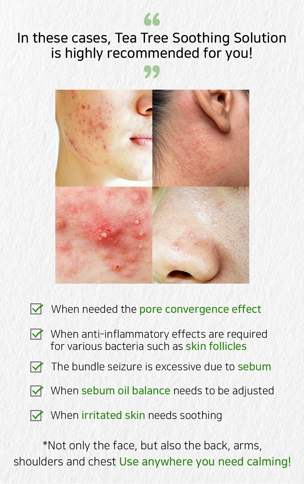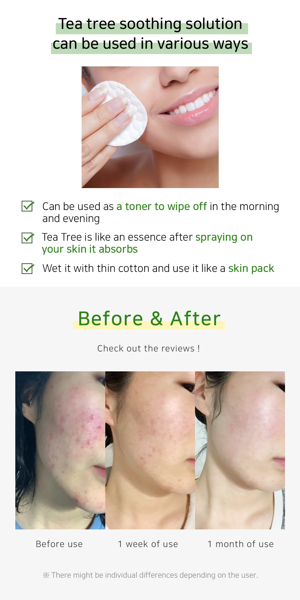 Este tónico recomendado por dermatólogos es revolucionario para quienes luchan contra el acné, la sensibilidad o el tono desigual de la piel. Nuestra fórmula se basa en una impresionante concentración del 3 % de aceite puro de árbol de té, reconocido por sus potentes propiedades antibacterianas, antifúngicas y antivirales. Es como tener un sistema de defensa natural para la piel, combatiendo las bacterias que causan el acné y previniendo futuros brotes. Pero los beneficios no terminan ahí: el aceite de árbol de té también estimula la producción de glóbulos blancos, mejorando la capacidad de curación natural de la piel.