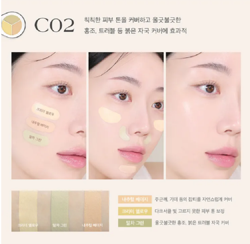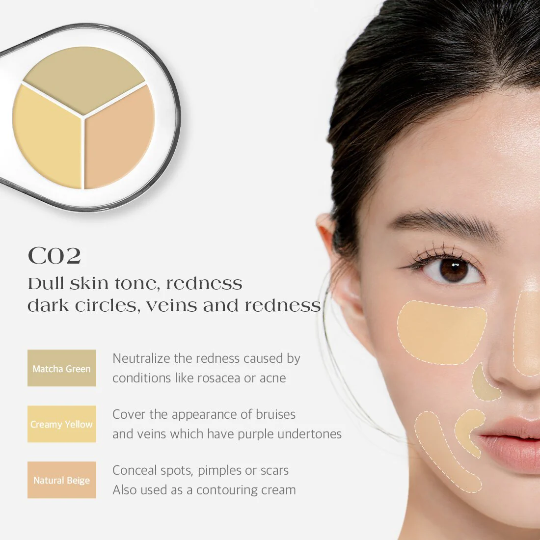 C02: Para tonos de piel apagados con ojeras y rojeces.