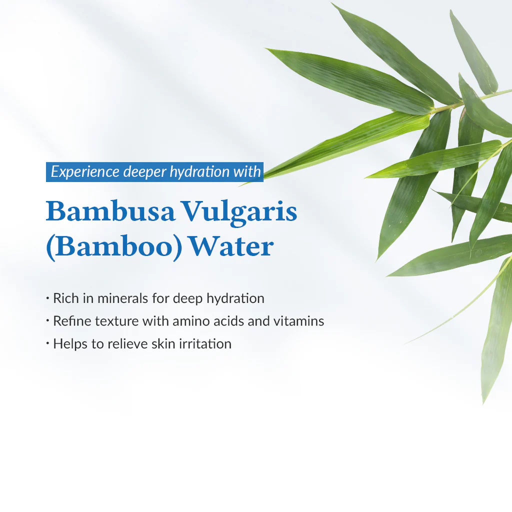 • Hidratación profunda y prolongada: Enriquecida con un 70% de agua de Bambusa Vulgaris, rica en minerales y antioxidantes que revitalizan y reequilibran la piel desde el interior.