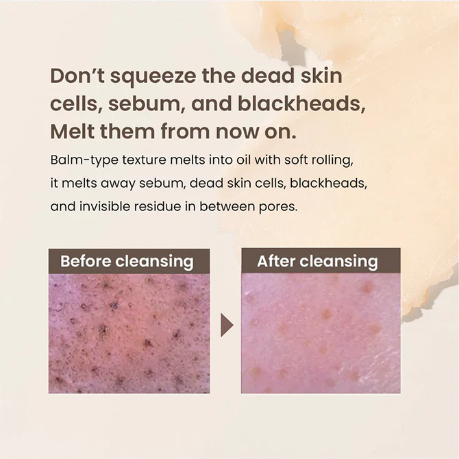 Recomendaciones de uso: Toma una pequeña cantidad, masajea suavemente sobre tu piel seca, y observa cómo el bálsamo se convierte en un aceite ligero que disuelve todas las impurezas. Al enjuagar, el aceite se transforma en una emulsión lechosa que deja tu piel suave, fresca y preparada para los siguientes pasos de tu rutina de cuidado de la piel. Aclarar con abundante agua tibia y finalizar con un jabón acuoso para mejores resultados.