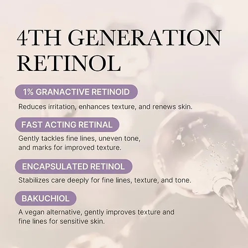 Serum profesional con retinol y bakuchiol para combatir arrugas y mejorar la firmeza. Hidrata profundamente, mejora la elasticidad y unifica el tono. Apto para todo tipo de piel. 30 ml.