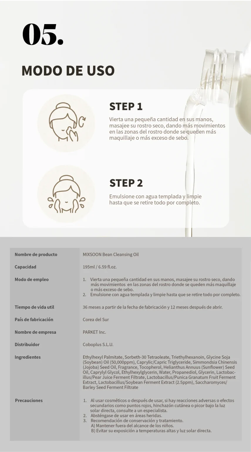 Transforma tu rutina de cuidado facial con el MIXSOON Bean Cleansing Oil, donde la ciencia y la naturaleza se unen para ofrecerte una piel saludable y radiante.
