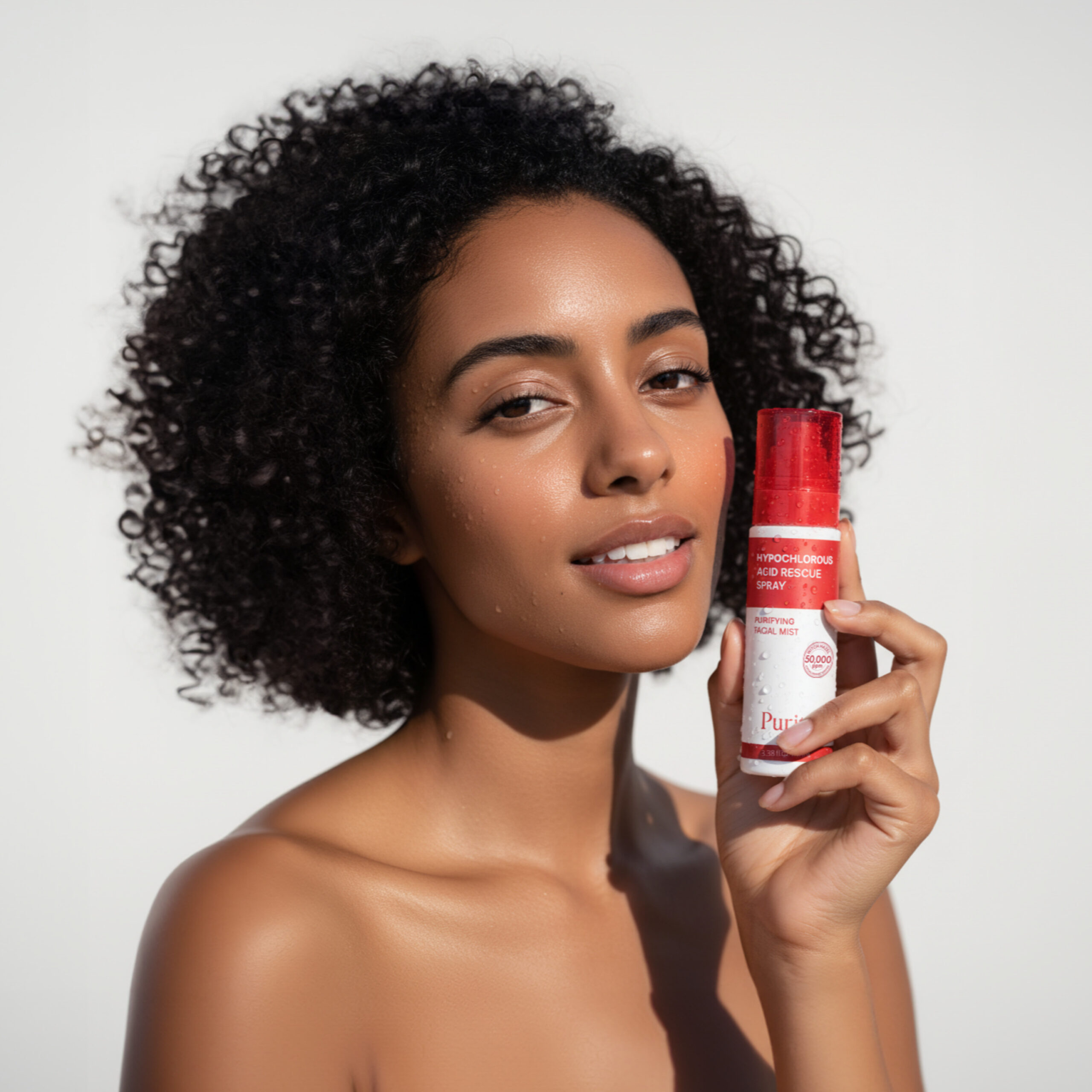 Además el ácido hipocloroso es seguro y beneficioso para la rosácea debido a sus propiedades antiinflamatorias, antibacterianas y calmantes, que ayudan a reducir el enrojecimiento y la irritación. Es un producto suave que ayuda a restaurar la barrera cutánea, aliviando la piel reactiva y sensible.