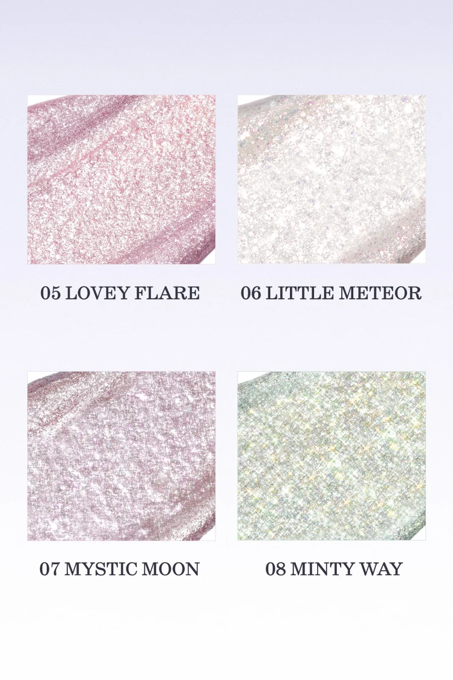 Este glitter líquido se adhiere perfectamente a la piel, proporcionando un acabado duradero y sin necesidad de retoques. Ideal para destacar tus ojos en eventos especiales o para añadir un toque de glamour a tu rutina diaria. Con una fórmula enriquecida con ingredientes hidratantes como el ácido hialurónico y el extracto de semilla de soja, cuida y protege tus párpados mientras brillas.