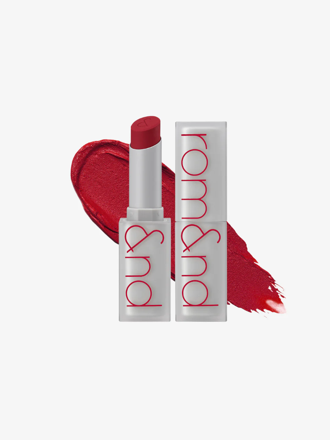 Descubre el ROM&ND Zero Matte Lipstick #13 Red Carpet. Un labial mate seductor que ofrece un rojo intenso y elegante. Textura aterciopelada que hidrata y dura todo el día. ¡Luce labios irresistibles!